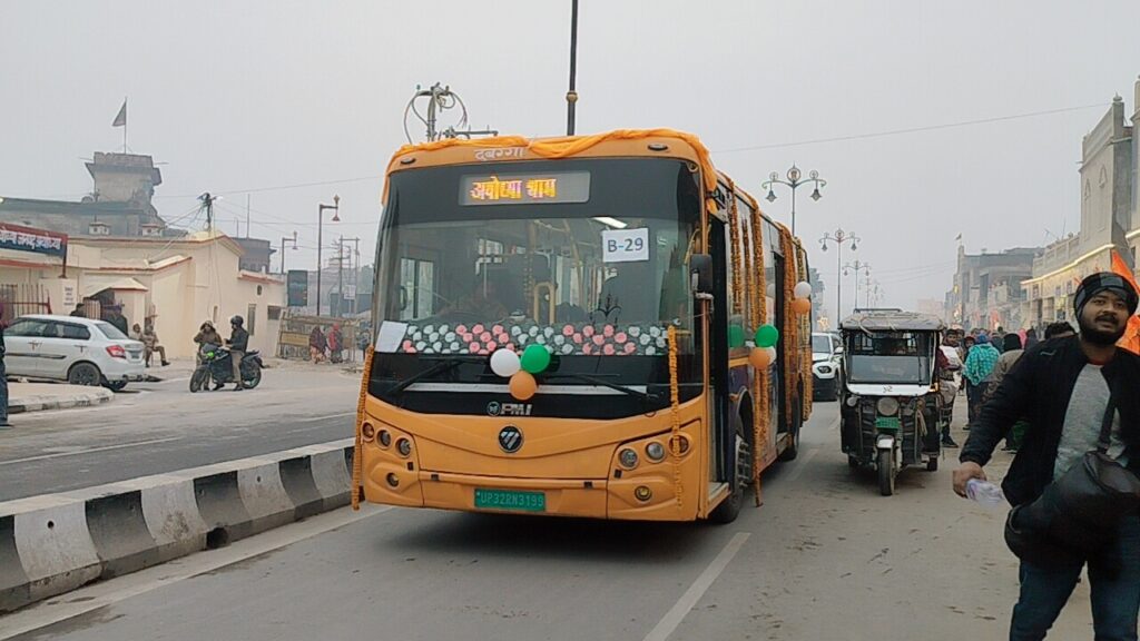 अयोध्या। भगवान राम लला के प्राण प्रतिष्ठा महोत्सव व उसके बाद श्रद्धालुओं के लिए परिवहन विभाग की व्यापक तैयारी है। मुख्यमंत्री के निर्देश पर पांच सौ इलेक्ट्रिक बसों का बेड़ा शामिल होगा, जिससे सभी परिक्रमा मार्गों पर ई- बसों का संचालन होगा। शहर में डीजल से चलने वाले वाहनों पर प्रतिबंध भी लग सकता है। अयोध्या आने वाले श्रद्धालुओं के लिए विभिन्न मार्गों पर लगाई गई परिवहन विभाग की 1000 बसे, सभी बसों में राम धुन बज रही है, इतना ही नहीं रेलवे स्टेशनों पर श्रद्धालुओं को किसी प्रकार की दिक्कत न हो इसके लिए परिवहन विभाग ने चार एआरएम को तैनात किया गया है। श्रद्धालुओं को रेलवे स्टेशन बस स्टेशन से बस पर सवार कर अयोध्या धाम के लिए रवाना करेंगे।परिवहन मंत्री दया शंकर सिंह का कहना है कि सभी परिक्रमा मार्गों पर ई बसों को चलाया जाएगा, मुख्यमंत्री के निर्देश पर अयोध्या में 500 इलेक्ट्रिक बसों को संचालित किया जाएगा, प्राण प्रतिष्ठा 22 जनवरी के बाद 300 बस केवल रेलवे स्टेशन से लाने ले जाने के लिए लगाया जाएगा, सभी बसें प्रदूषण मुक्त तथा टीवी और म्यूजिक सिस्टम भी लगाया गया है, अयोध्या में केवल सीएनजी इलेक्ट्रिक गाड़ियां चले, डीजल गाड़ियां ना चले इसकी तैयारी चल रही है।