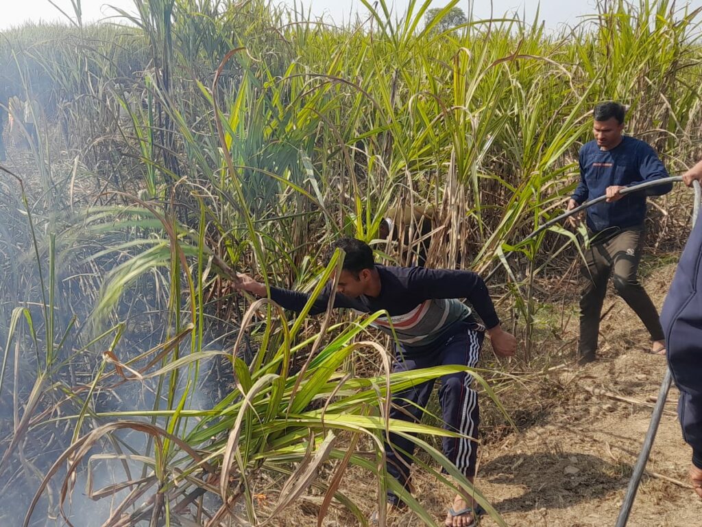 मिल्कीपुर तहसील के रायपट्टी गांव स्थित गन्ने के खेत में तेज हवा के चलते हुई शॉर्ट सर्किट से गन्ने की फसल में आग लग गई, जिससे करीब 10 बीघा फसल जलकर राख हो गया। इस घटना से किसानों का लाखों रुपए का नुकसान हुआ है। वहीं किसानों ने विद्युत विभाग से मुआवजे की गुहार लगाई है।प्राप्त जानकारी के अनुसार थाना खण्डासा क्षेत्र के रायपट्टी गांव के कृषक विष्णु कुमार सिंह व महीपत सिंह के खेतों के ऊपर से हाई टेंशन लाइन गुजर रही है तथा विद्युत पोल भी लगा हुआ। शनिवार की दोपहर बाद तेज हवा चलने के कारण तार में शॉर्ट सर्किट के कारण चिंगारी निकली और आग लग गई। पड़ोस के खेत में मजदूरों द्वारा गन्ने की कटाई की जा रही थी। गन्ने के खेत में आग लग गई है और तेज हवा के चलते गन्ना बहुत तेजी से जल रहा है।पास के खेत में गन्ना कटा रहे मजदूरों के गुहार लगने पर ग्रामीण भी मौके पर पहुंच गए और विद्युत विभाग को जानकारी देते हुए विद्युत सप्लाई बंद कराते हुए आग बुझाने में जुट गए लेकिन जब तक ग्रामीण आग बुझा पाते तब तक करीब 10 बीघा खड़ी गन्ने की फसल जलकर राख हो गई। वहीं किसानों का कहना है कि यह घटना बिजली विभाग के लापरवाही से हुई है। अब उनकी फसल को शुगर मिल वाले भी सही दाम में अब नहीं लेंगे, जिससे उन्हें काफी नुकसान का सामना करना पड़ेगा।उपखंड अधिकारी कुमारगंज संतोष कुमार का कहना है कि गन्ने के खेत में आग लगने की जानकारी प्राप्त हुई है। लेकिन स्पष्ट नहीं हो पाया है कि शाॅर्ट सर्किट से ही लगी है या अन्य कारणो से फिलहाल जांच कराया जाएगा यदि शार्ट सर्किट से किसानों की फसल का नुकसान हुआ है तो उचित मुआवजा भी दिलाया जाएगा।