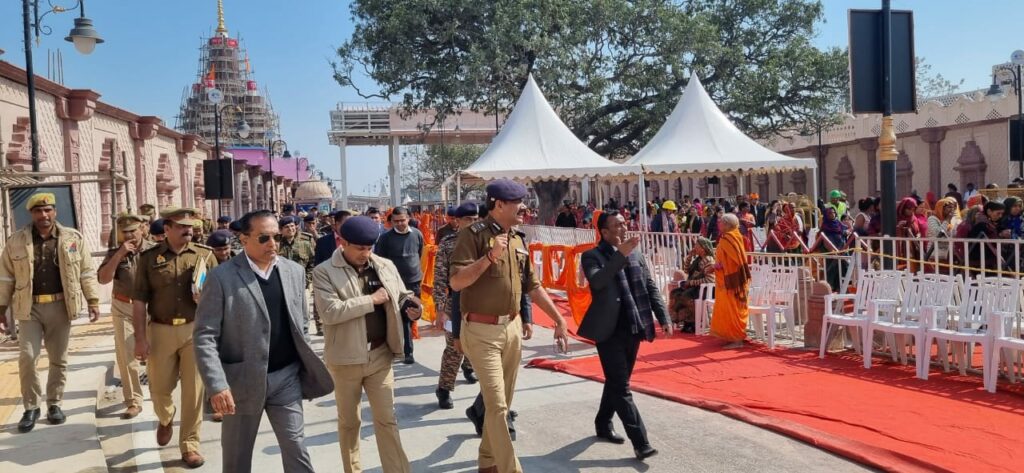 अयोध्या। श्रीराम जन्मभूमि मंदिर परिसर, दर्शन मार्ग, निकास द्वार, पी0एफ0सी0 परिसर एवं अन्य विभिन्न महत्वपूर्ण स्थलों का निरीक्षण ए0डी0जी0 सुरक्षा रघुवीर लाल, ए0डी0जी0 जोन पीयूष मोर्डिया, मण्डलायुक्त गौरव दयाल, जिलाधिकारी नितीश कुमार, वरिष्ठ पुलिस अधीक्षक राजकरन नैय्यर सहित सी0आर0पी0एफ0 एवं एस0एस0एफ0 के प्रमुख अधिकारियों के साथ किया गया। इस दौरान अधिकारियों द्वारा रामलला के दर्शन हेतु आने वाले दर्शनार्थियों के सुगम दर्शन हेतु सुरक्षा व्यवस्था में तैनात कर्मियों एवं अन्य सम्बंधित को आवश्यक दिशा निर्देश दिये गये।