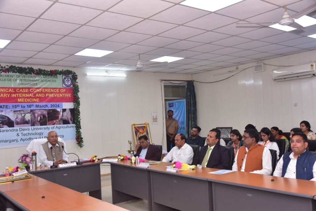 कुमारगंज। आचार्य नरेंद्र देव कृषि एवं प्रौद्योगिक विश्वविद्यालय के हाईटेक हाल में शुक्रवार को पशु औषधि विज्ञान का दो दिवसीय क्लिनिकल केस विषय पर राष्ट्रीय सम्मेलन का आयोजन किया गया। कार्यक्रम का शुभारंभ विवि के कुलपति डा. बिजेंद्र सिंह व अन्य अतिथियों ने मां सरस्वती की प्रतिमा पर माल्यार्पण कर किया। इस मौके पर सात राज्यों के 124 परास्नातक एवं शोध छात्र-छात्राओं ने इस सम्मेलन में प्रतिभाग किया।