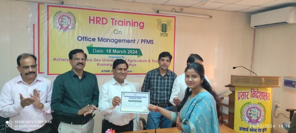 कुमारगंज अयोध्या। आचार्य नरेंद्र देव कृषि एवं प्रौद्योगिक विश्ववि‌द्यालय में मानव संसाधन विकास अंतर्गत पीएफएमएस (सार्वजनिक वित्तीय प्रबंधन प्रणाली) वित्तीय एवं कार्यालय प्रबंधन पर प्रशिक्षण शिविर का आयोजन किया गया। यह कार्यक्रम विश्वविद्यालय के कुलपति डा. बिजेंद्र सिंह के दिशा-निर्देशन में आयोजित किया गया। अपर निदेशक प्रसार डा. आर.आर सिंह ने बताया कि पीएफएमएस लाभार्थियों के बैंक एवं डाकघर के साथ-साथ खाते के विवरण की पुष्टि करता है। इस एप्लीकेशन से पैसा सीधे लाभार्थियों के खाते में जाने की पुष्टि करता है और गलत भुगतान का खतरा कम हो जाता है। डा. सिंह ने बताया कि पीएफएमएस का पहला उद्देश्य एक कुशल निधि प्रवाह प्रणाली और व्यय नेटवर्क स्थापित करना है। सह प्राध्यापक डा. अनिल ने बताया कि पीएफएमएस प्रणाली के विभिन्न पहलुओं पर विस्तार से चर्चा की गई जिसमें प्रतिभागियों को पीएफएमएस के डेमो पोर्टल पर सीखने और अभ्यास करने के तरीकों को बताया गया। यह प्रशिक्षण केवीके के कार्मिकों, सहायक तथा स्टेनोग्राफर को प्रशिक्षित करने के लिए किया गया। कार्यक्रम का संचालन डा. अनिल कुमार ने किया। इस अवसर पर डा. के. एम सिंह, डा. सौरभ वर्मा, डा. एल.सी वर्मा, डा. आरपी.एस रघुवंशी, एस.पी सिंह, आलोक पांडेय, बी.एस अजय, ज्वलंत कुमार सहित अन्य लोग मौजूद रहे।