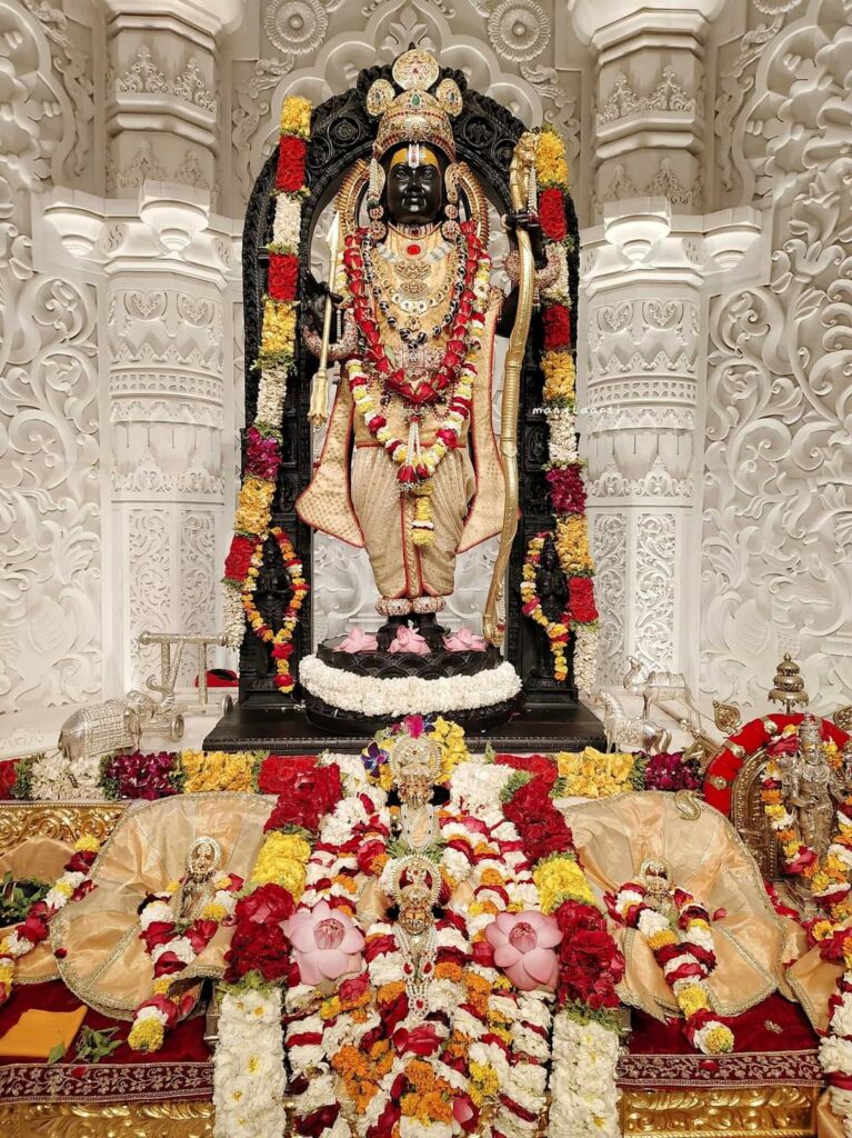 अयोध्या। राम नगरी अयोध्या में 22 जनवरी को प्रभु श्रीराम अपने भव्य महल में विराजमान हुए थे। इसके बाद से प्रभु श्रीराम का दर्शन करने के लिए श्रद्धालुओं का सैलाब उमड़ रहा है। प्रतिदिन दो से तीन लाख श्रद्धालु प्रभु श्रीराम का दर्शन कर रहे हैं। शनिवार को प्रभु श्रीराम को पहली बार सूती कपड़ा पहनाया गया। श्री राम ट्रस्ट ने फैसला लिया है कि बढ़ते हुए तापमान से अब प्रभु श्रीराम को आरामदायक सूती कपड़े पहनाए जाएंगे। शनिवार को मलमल के कपड़े को नील से रंग कर और उसके किनारे गोटा से सजा कर तैयार किया गया। फिर कपड़ा प्रभु श्रीराम को पहनाया गया। बता दें कि जब से प्रभु श्रीराम अपने भव्य महल में विराजमान हुए हैं तब से अब तक उनको सिल्क के उत्सवी कपड़ा पहनाया जा रहा था, लेकिन बढ़ते हुए तापमान की वजह से प्रभु श्रीराम को सूती कपड़ा पहनाने का फैसला लिया गया है।