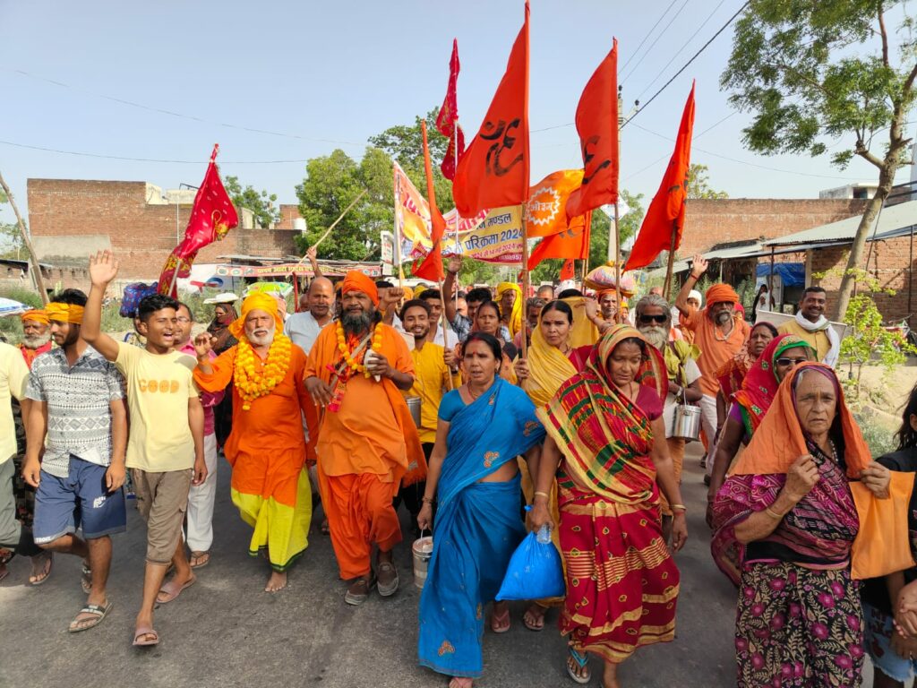 अमरगंज में परिक्रमार्थियों का हुआ भव्य स्वागत।