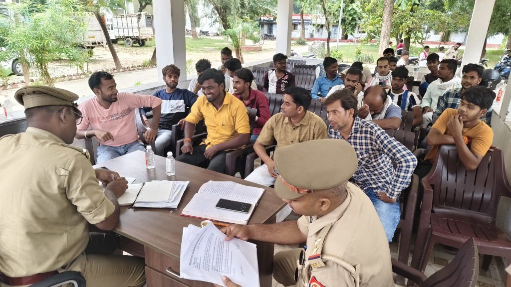 अयोध्या के वरिष्ठ पुलिस अधीक्षक (एसएसपी) डॉ. गौरव ग्रोवर के निर्देश पर गुरुवार को थाना कुमारगंज में डीजे संचालकों के साथ एक महत्वपूर्ण बैठक आयोजित की गई। इस बैठक की अध्यक्षता थानाध्यक्ष ओमप्रकाश ने की, जिसमें आगामी दुर्गा पूजा, रामलीला, और दशहरा उत्सवों के दौरान शांति और सुरक्षा सुनिश्चित करने के लिए आवश्यक दिशा-निर्देश जारी किए गए। बैठक में डीजे संचालकों को भड़काऊ गाने बजाने से मना किया गया और पंडालों में सीसीटीवी कैमरे लगाने जैसे सुरक्षा उपायों पर जोर दिया गया।
