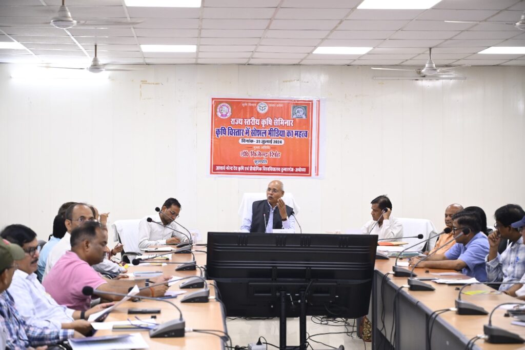 आचार्य नरेंद्र देव कृषि एवं प्रौद्योगिक विश्वविद्यालय के हाईटेक हाल में “कृषि विस्तार में सोशल मीडिया का महत्व” विषय पर राज्य स्तरीय कृषि सेमिनार का आयोजन किया गया। कार्यक्रम का शुभारंभ कृषि विश्वविद्यालय के कुलपति डा. बिजेंद्र सिंह, राजस्थान से पहुंचे मुख्य वक्ता पिंटू लाल मीणा एवं समस्त अधिष्ठाता ने दीप प्रज्वलन कर किया।