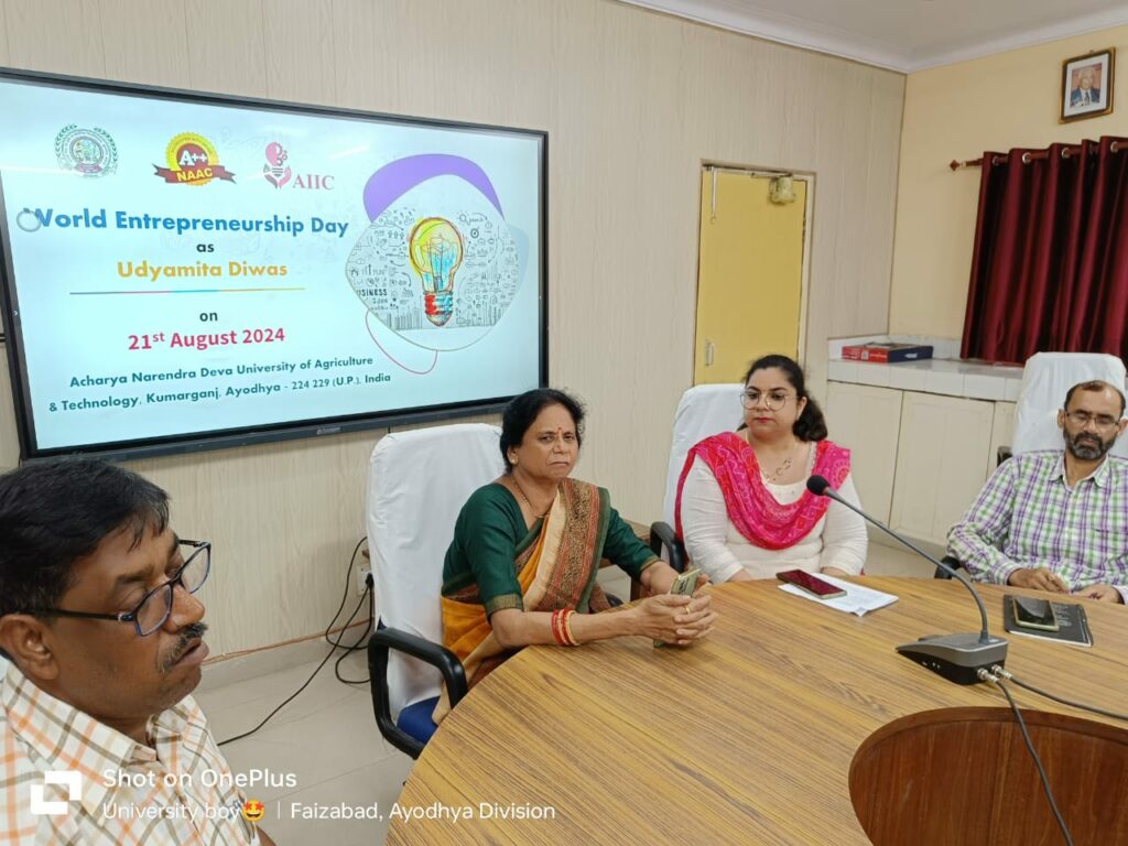कुमारगंज अयोध्या। विश्व उद्यमिता दिवस पर कार्यक्रम का आयोजन, छात्रों एवं शिक्षकों ने साझा किए अपने विचार आचार्य नरेंद्र देव कृषि एवं प्रौद्योगिक विश्वविद्यालय के कृषि महाविद्यालय में विश्व उद्यमिता दिवस पर कार्यक्रम का आयोजन किया गया। यह कार्यक्रम कुलपति डा. बिजेंद्र सिंह के दिशा-निर्देशन में आयोजित किया गया। इस मौके पर विश्वविद्यालय के छात्र-छात्राओं ने बढ़-चढ़कर प्रतिभाग किया और अपने-अपने विचार साझा किए।