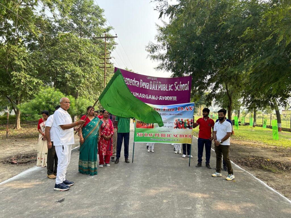 आचार्य नरेंद्र देव कृषि एवं प्रौद्योगिक विश्वविद्यालय कुमारगंज के परिसर में स्थित डी.ए.वी पब्लिक स्कूल में महात्मा गांधी तथा लालबहादुर शास्त्री के जयंती के अवसर पर रन फॉर डी. ए. वी. प्रतियोगिता का आयोजन किया गयाl प्रतियोगिता बच्चों तथा अभिभावकों के स्वास्थ्य, शांति व एकता को बढ़ावा देने से संबंधित थीl प्रतियोगिता का शुभारंभ विश्वविद्यालय के कुलपति डॉ विजेंद्र सिंह व स्कूल की प्रधानाचार्या श्रीमती पुष्पा कुमारी ने हरी झंडी दिखाकर कियाl तत्पश्चात प्रधानाचार्या सहित स्कूल के समस्त शिक्षकों द्वारा गांधी, शास्त्री की प्रतिमा पर श्रद्धा सुमन अर्पित कर उनको श्रद्धांजलि दी गईl इस अवसर पर स्कूल के सभी शिक्षकगण व कर्मचारी उपस्थित रहेl