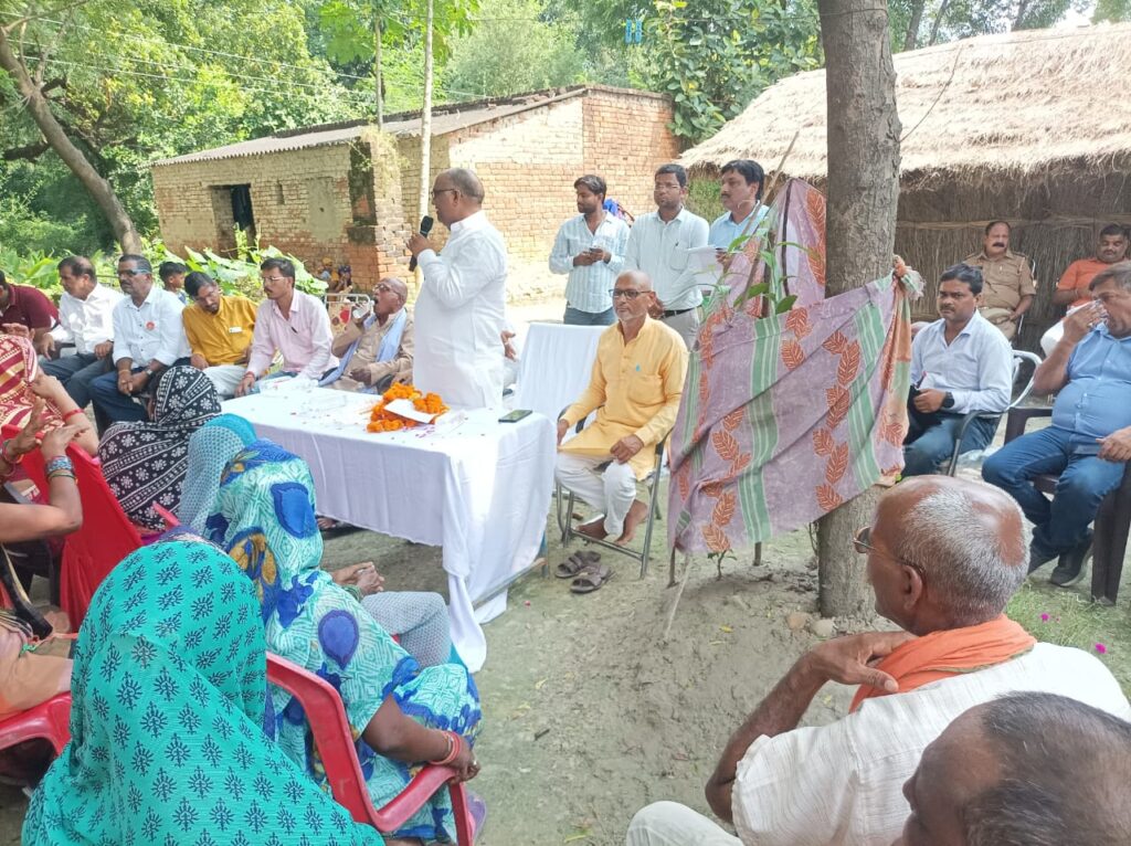 जनपद के हैरिग्टनगंज विकास खण्ड अन्तर्गत ग्राम पंचायत घुरेहटा, ग्राम पंचायत सिधौरा, ग्राम पंचायत पलिया लोहानी में पूर्व जिलाध्यक्ष अवधेश पान्डेय बादल की अध्यक्षता में प्रभारी मंत्री श्री यादव ने सभा को संबोधित करते हुए केंद्र व राज्य सरकार की जन कल्याणकारी योजनाओं पर प्रकाश डालते हुए कहा कि हमारी सरकार में वृद्धा पेंशन,विधवा पेंशन,दिव्यांग पेंशन, विद्युत आपूर्ति,राशन कार्ड,आयुष्मान कार्ड, प्रधानमंत्री आवास योजना, मुख्यमंत्री आवास योजना के बाबत ग्राम वासियों से वार्ता की और कहा की सरकार की हर योजनाओं का लाभ बिना किसी भेदभाव के सभी को मिल रहा है। जहाँ पर सभी विभागों के अधिकारियों को निर्देश दिया कि जो भी वंचित पात्र लाभार्थी किसी भी योजना से छूटे हैं, उन्हें तत्काल योजनाओं का लाभ दिलाए इसमें किसी प्रकार के लापरवाही न करे क्योंकि माननीय प्रधानमंत्री व यशस्वी मुख्यमंत्री की मंशा साफ सबका साथ सबका विकास सबका विश्वास इस दौरान प्रधानमंत्री आवास योजना के पांच लाभार्थियों को चाभी दी गई तथा तीन-तीन लाभार्थियों को शौचालय का स्वीकृत पत्र दिया। वहीं दो बच्चों का अन्नप्राशन तथा दो गर्भवती महिला का गोद भराई की। ग्राम चौपाल में मुख्य रूप से परियोजना निदेशक (जि ग्रा वी अभिं ) अयोध्या,खंण्ड विकास अधिकारी अखिलेश मिश्रा, एडीओ पंचायत अरविन्द कुमार, आई एस बी अबिनाश चतुर्वेदी, एडीओ कोपरेटिव अवधेश कुमार वर्मा, ऐड़ियों एसके ऊषा शर्मा, जेई एमआई अमित कुमार कशौधन, बाल विकास परियोजना अधिकारी ओमप्रकाश सिंह,भाजपा जिला उपाध्यक्ष सरयू दूबे, प्रभारी एड़ियों कृषि उमाशंकर यादव,खाद एवं रसद विभाग मिल्कीपुर, विद्युत विभाग के जेई अरून कुमार वर्मा, व समस्त ग्राम पंचायत विकास अधिकारी व समस्त सम्बंधित ग्राम प्रधान रहे उपास्थित।