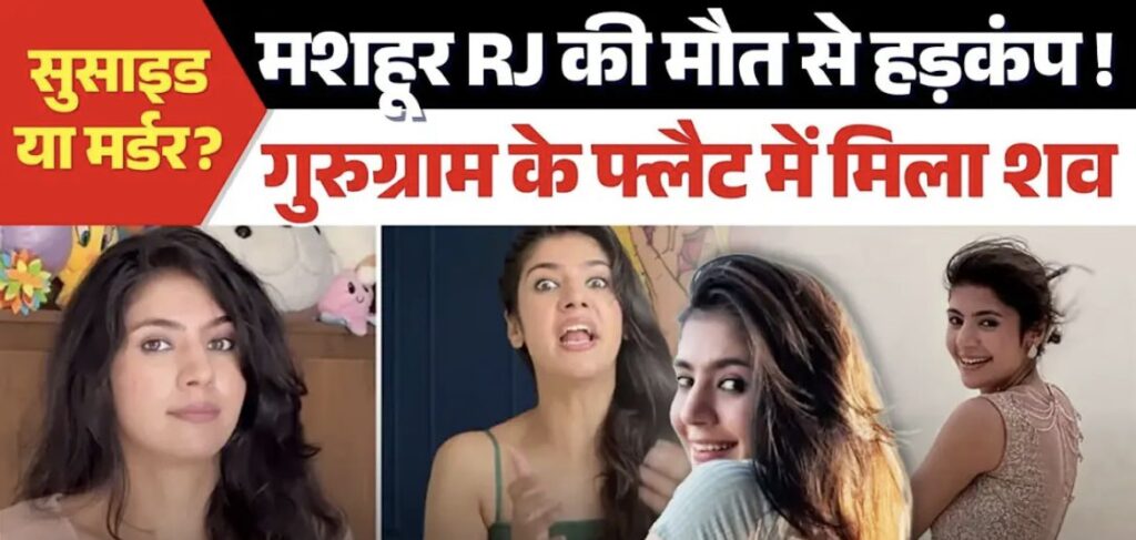 मशहूर आरजे सिमरन का फंदे से लटका हुआ शव मिलने से हड़कंप मच गया है। गुरुग्राम के सेक्टर-47 में अपने फ्लैट में रेडियो जॉकी (RJ) सिमरन ने आत्महत्या कर ली है। सिमरन पहले RJ थी, वह इस समय रील्स बनाती थी। घटना गुरुवार दोपहर की बताई जा रही है।फिलहाल सूचना पर पहुंची गुरुग्राम पुलिस ने एफआईर दर्ज करते हुए जांच शुरू कर दी है। सिमरन के इंस्टाग्राम पर 6 लाख से ज्यादा फॉलोअर्स हैं, रील्स बनाने से पहले सिमरन एक FM रेडियो जॉकी (RJ) रह चुकी थीं। हालांकि, अभी वह फ्रीलांस काम करती थीं, गुरुग्राम पुलिस के मुताबिक सिमरन ने फांसी लगाकर जान दी।