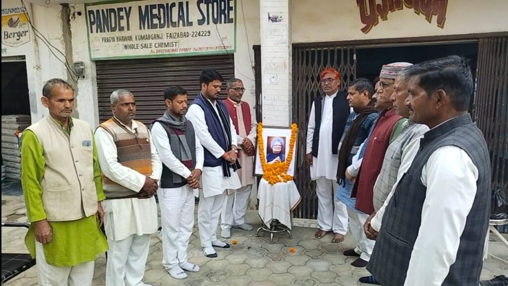 नगर पंचायत कुमारगंज अयोध्या। देश के पूर्व प्रधानमंत्री एवं दुनिया के प्रसिद्ध अर्थशास्त्री डॉ मनमोहन सिंह जी का कल रात दिल्ली एम्स में लम्बी बीमारी के चलते 92 वर्ष की आयु में निधन हो गया है। उनके निधन पर देशवासी शोकमग्न है जिसके चलते केंद्र सरकार ने देश में सात दिवसीय राष्ट्रीय शोक भी घोषित किया है