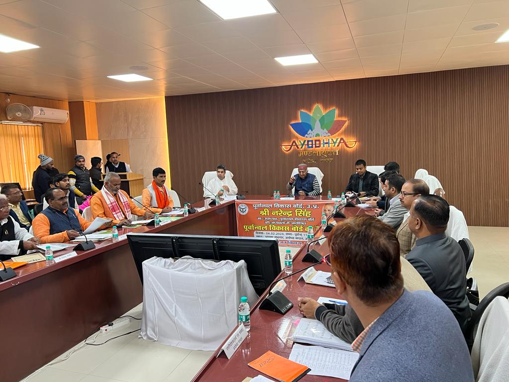 अयोध्या।पूर्वांचल विकास बोर्ड की बैठक संपन्न, पूर्वांचल विकास बोर्ड की बैठक में अयोध्या पर रहा फोकस,अयोध्या में अयोध्या,अयोध्या में अवध,अयोध्या में उत्तर प्रदेश व अयोध्या में भारत की तस्वीर बनाने के लिए हुआ मंथन।पूर्वांचल विकास बोर्ड के सलाहकार साकेत मिश्र का बयान,अयोध्या में बन रहे राम मंदिर के साथ-साथ जिन चीजों की जरूरत है उस पर हुआ मंथन,सुरक्षा व्यवस्था,पर्यावरण की शुद्धता,सड़क मार्ग व रेल मार्ग की व्यवस्था,अयोध्या में आएंगे करोड़ों श्रद्धालु उनके स्वास्थ्य के लिए स्वास्थ्य की व्यवस्था,अयोध्या को विकसित कर एक उदाहरण बनाकर विश्व के सामने पेश करने की कवायद,जो श्रद्धालु अयोध्या आना चाहे उसको कोई परेशानी ना हो,अयोध्या के माध्यम से अयोध्या मंडल का भी होगा विकास,अयोध्या की कनेक्टिविटी पर भी फोकस,अयोध्या से जुड़ने वाले सड़क मार्ग व रेल मार्ग पर फोकस, अयोध्या से प्रयागराज, अयोध्या से श्रावस्ती मार्ग पर भी फोकस, मंडल आयुक्त सभागार में संपन्न हुई बैठक, बैठक में बोर्ड के अध्यक्ष,सलाहकार, सदस्य, कमिश्नर गौरव दयाल,डीएम नीतीश कुमार व मंडल के अधिकारी भी रहे मौजूद।