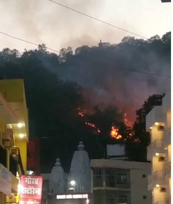 हरिद्वार। मां मनसा देवी मंदिर के पास पहाड़ियों में लगी आग।