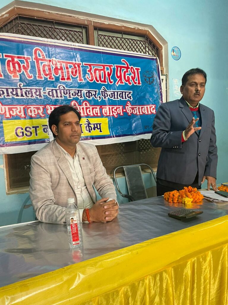 वाणिज्य कर विभाग अयोध्या द्वारा अपर आयुक्त ग्रेड वन राज्य कर अयोध्या जोन अयोध्या के निर्देशन में आज एक पंजीयन जागरूकता शिविर का आयोजन नगर पंचायत कुमार गंज तहसील मिल्कीपुर में किया गया जिसमें राज्य कर अधिकारी उमाशंकर तिवारी द्वारा जीएसटी नंबर लेने से होने वाले फायदे से अवगत कराया। किन किन प्रपत्रों को लगाकर जीएसटी नंबर प्राप्त किया जा सकता है, सहित रिटर्न फाइल करने पर भी विस्तार से जानकारी दी गई। जनमानस में व्याप्त भ्रांति को भी दूर किया गया और अपना मोबाईल नम्बर भी सभी लोगों को उपलब्ध कराया गया कि किसी भी समस्या का समाधान बिना कार्यालय आए ही कर सकते हैं। बैठक लगभग दो घंटे से अधिक चली। जागरूकता अभियान में शामिल सभी लोगों की समस्याओं का मौके पर ही समाधान किया गया। इस कार्यक्रम में प्रमुख रुप से कुमारगंज के व्यापारी सम्भ्रांत नागरिक सहित जोनल चेयरमैन उत्तर प्रदेश कर अधिवक्ता संगठन उपस्थित रहे। अधिवक्ता सतीश पांडेय द्वारा GST क़ानून के लिए उपस्थिति लोगों को जागरूक कर जीएसटी पंजीकरण कराने हेतु प्रेरित किया गया।