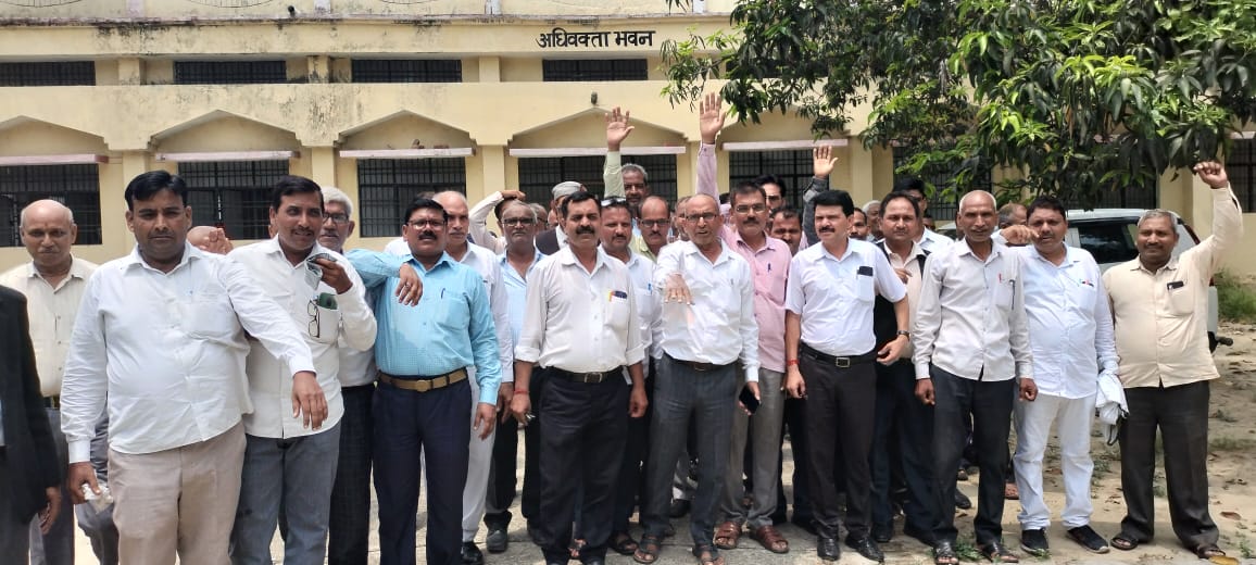 एसडीएम व पेशकार की कार्यशैली से नाराज अधिवक्ताओं ने निकाला जुलूस, लगाए मुर्दाबाद के नारे।